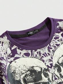 Grunge Punk Men's Fashionable Skull Print Short Sleeve T-Shirt, Summer