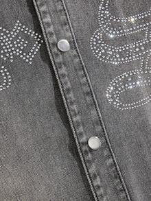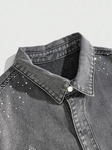 Street Life Men's Fashionable Washed Rhinestone Denim Shirt
