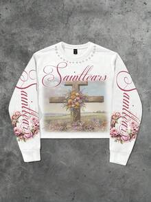 Street Life Men's Floral & Letter Gothic Print Crew Neck Long Sleeve Pullover Sweatshirt, For Fall