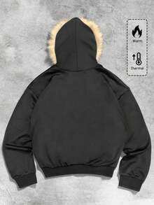 Street Life Men's Fluffy Collar Loose Short Style Zip Up Fuzzy Trim Hooded Sweatshirt , Streetwear, Fall/Winter