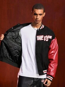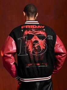 Friday the 13th X ROMWE Men's Letter & Mask Graphic Color Block Long Sleeve Baseball Jacket