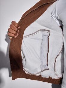 Street Life Men's Letter Embroidered Corduroy Zip-Up Casual Winter Jacket