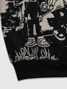 Street Life Men's Letter Print Long Sleeve Drawstring Hooded Casual Sweatshirt, Autumn