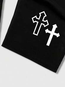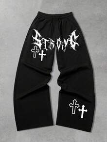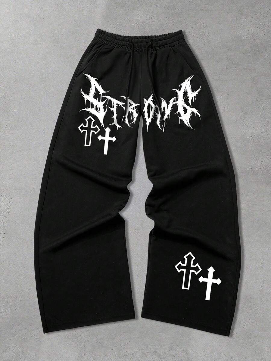 Goth Men's Loose Comfortable Cross Casual Straight Leg Sweatpants, Black