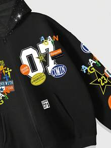 Street Life Men's Loose Preppy Cropped Sweatshirt Sweatshirt With Shiny Diamond Decor, Streetwear