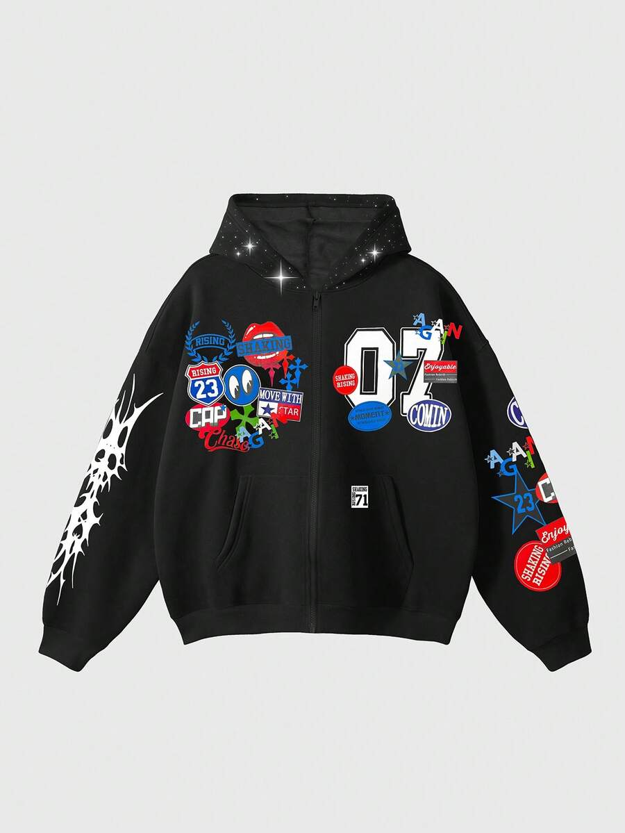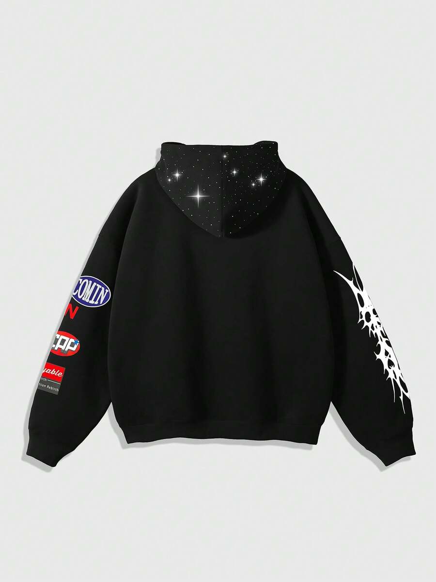 Street Life Men's Loose Cropped Preppy Sweatshirt With Shiny Sequin Decor, Streetwear