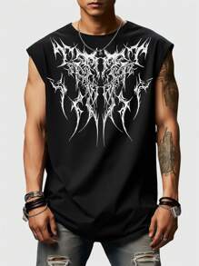 Grunge Punk Men's Loose Fit Tank Top With Graphic Printing, School
