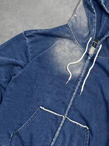 Street Life Men's Pentagram Patch Hooded Drawstring Zip-Up Casual Sweatshirt , Fall