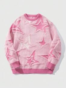 Street Life Men's Pentagram Pattern Crew Neck Loose Casual Sweater , Fall Winter