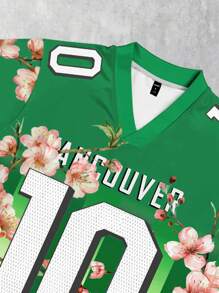 Prep Men's Preppy Football & Floral Print Short Sleeve T-Shirt, Everyday Wear