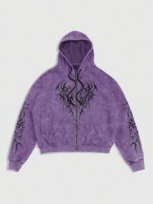 Street Life Men's Printed Long Sleeve Zip-Up Hooded Embroidered Sweatshirt , Fall
