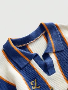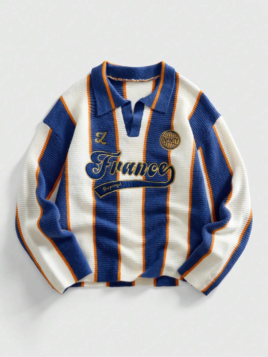 Prep Men's Retro Collared Football Inspired Knit Sweater, Preppy Streetwear Style