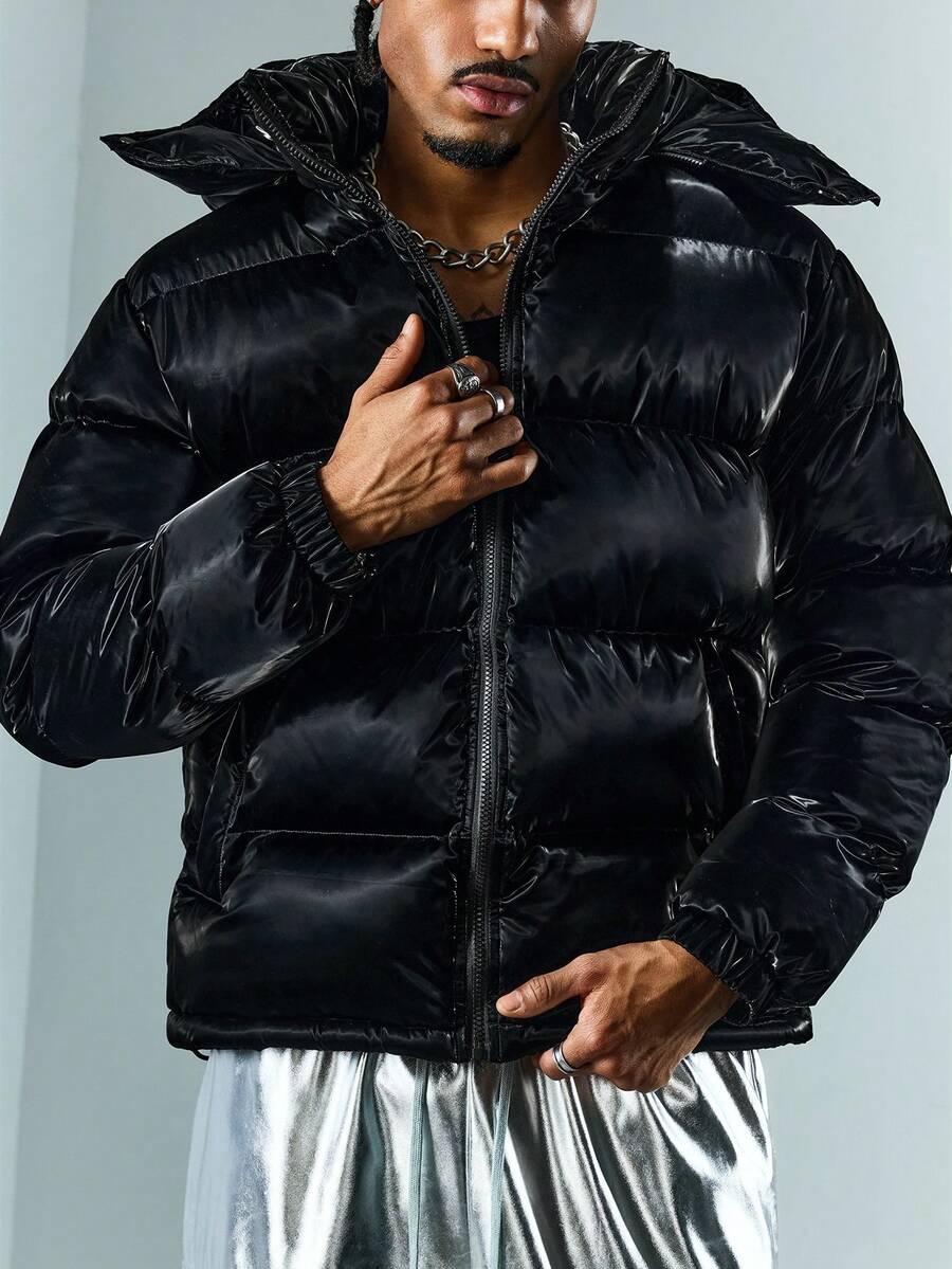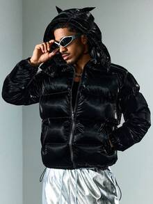 Street Life Men's Solid Color Long Sleeve Zip-Up Hoodie With 3D Ear Design, Winter Jacket
