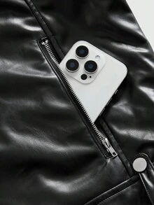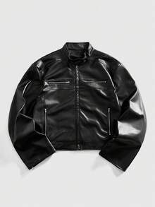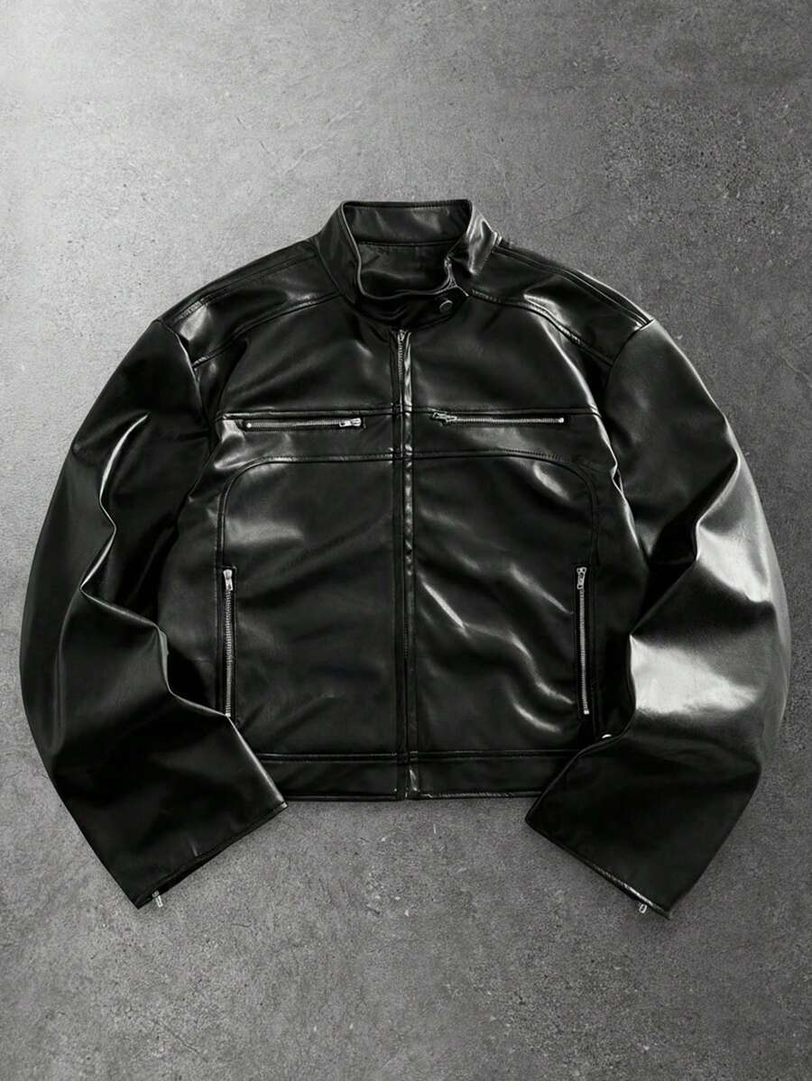 Street Life Men's Loose Solid Color PU Leather Zip Front Casual Jacket