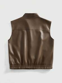 Street Life Men's Solid Color Zipper Front PU Leather Casual Vest, Autumn