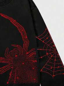 Goth Men's Sparkling Diamond Pattern Long Sleeve T-Shirt, Loose Cropped Fit, 2000s Style