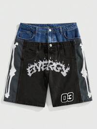 Street Life Men's Grunge Punk Chain Pattern Casual Denim Shorts Jorts, Daily Wear