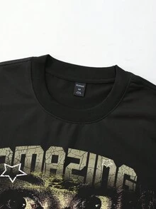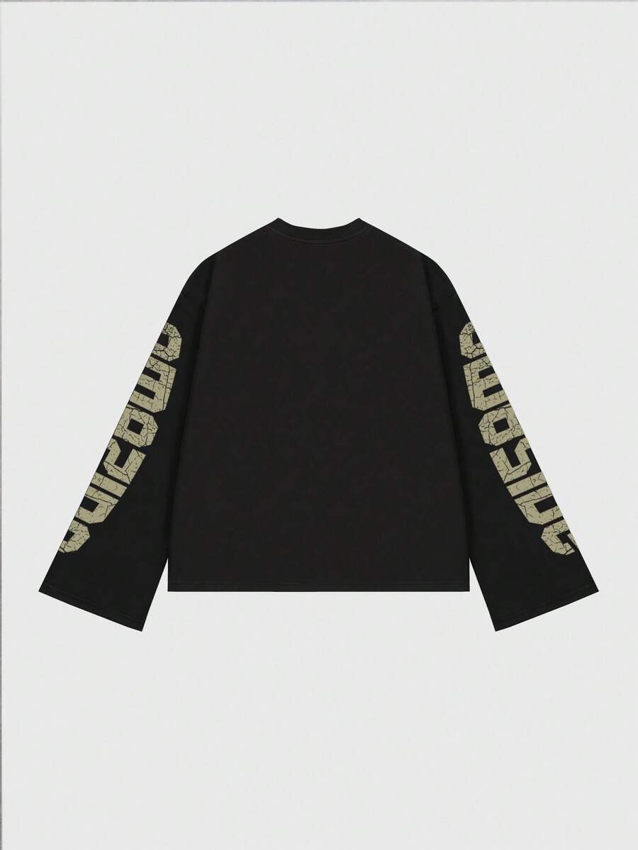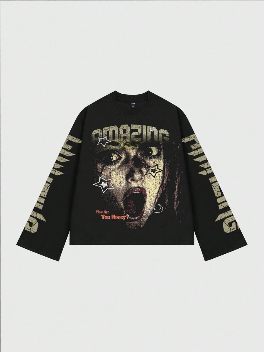 Street Life Men's Street Dark Figure Graphic Punk Long Sleeve T-Shirt, Loose Cropped Fit, For Fall, 2000s Style