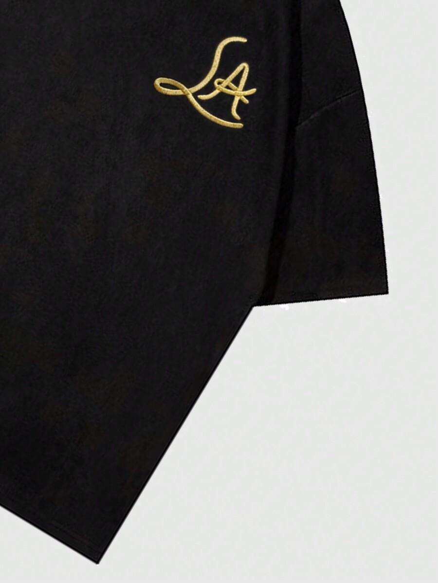 Prep Men's Velvet Alphabet Embroidery Short Sleeve T-Shirt