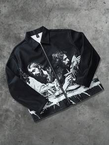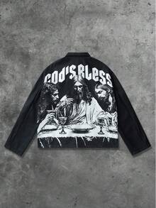 Street Life Men's Vintage Religious Portrait Print Wool Blend Jacket, Suitable For Autumn/Winter