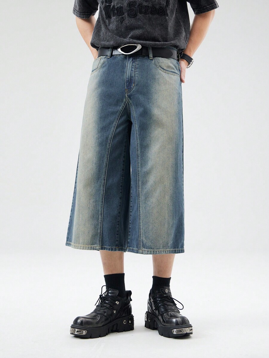 Street Life Men's Washed Drawstring Wide Leg Denim Capri Pants