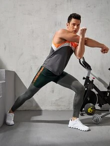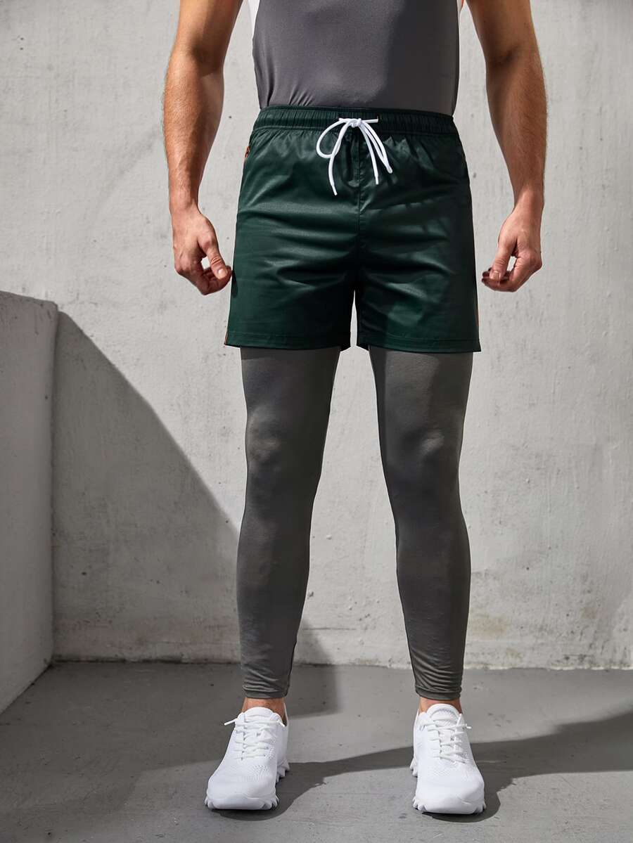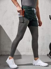 Men 2 In 1 Drawstring Waist Sports Tights With Phone Pocket