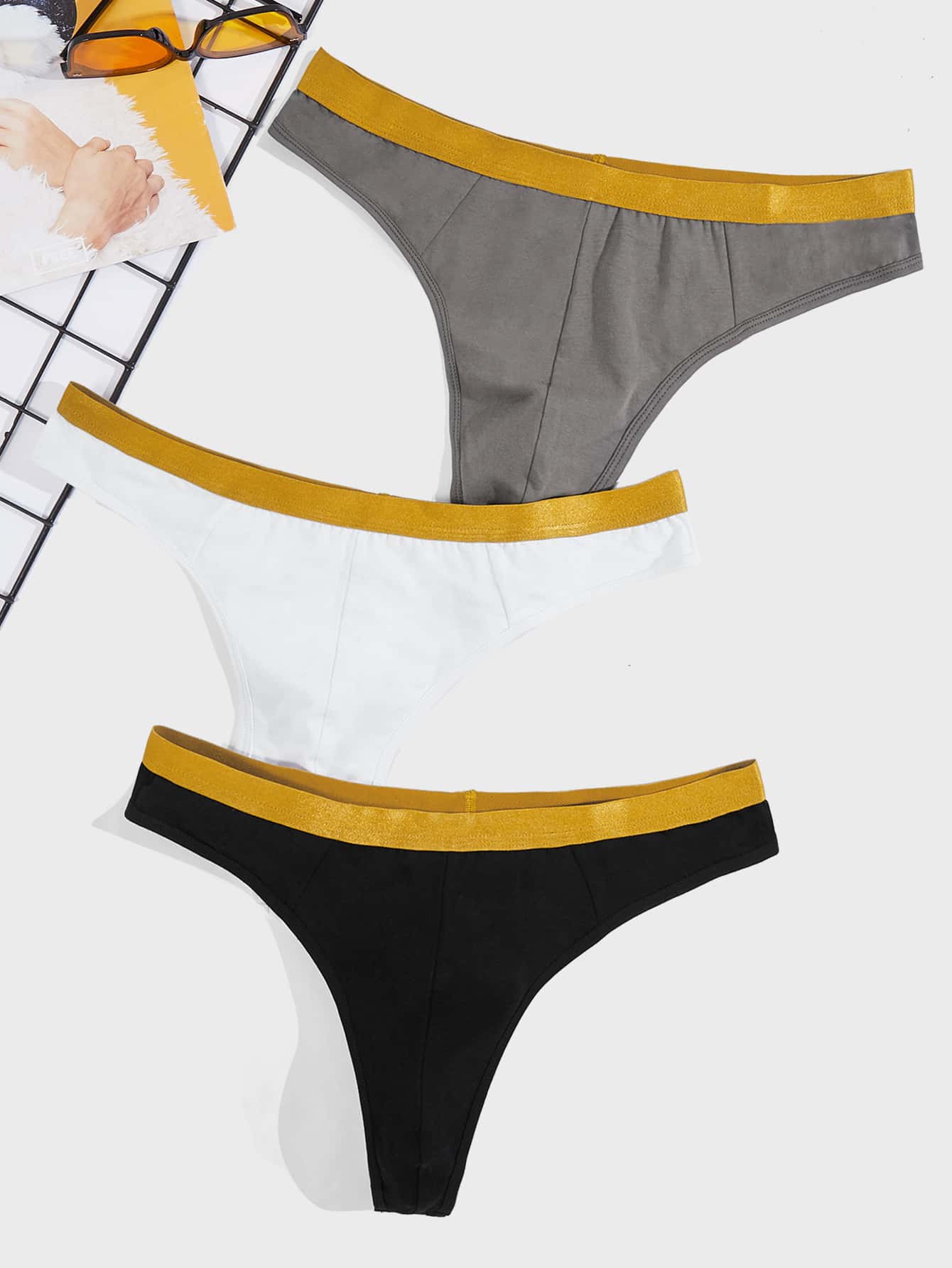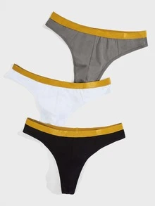 Guys 3pcs Tape Waist Contrast Tape Thong
