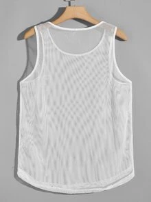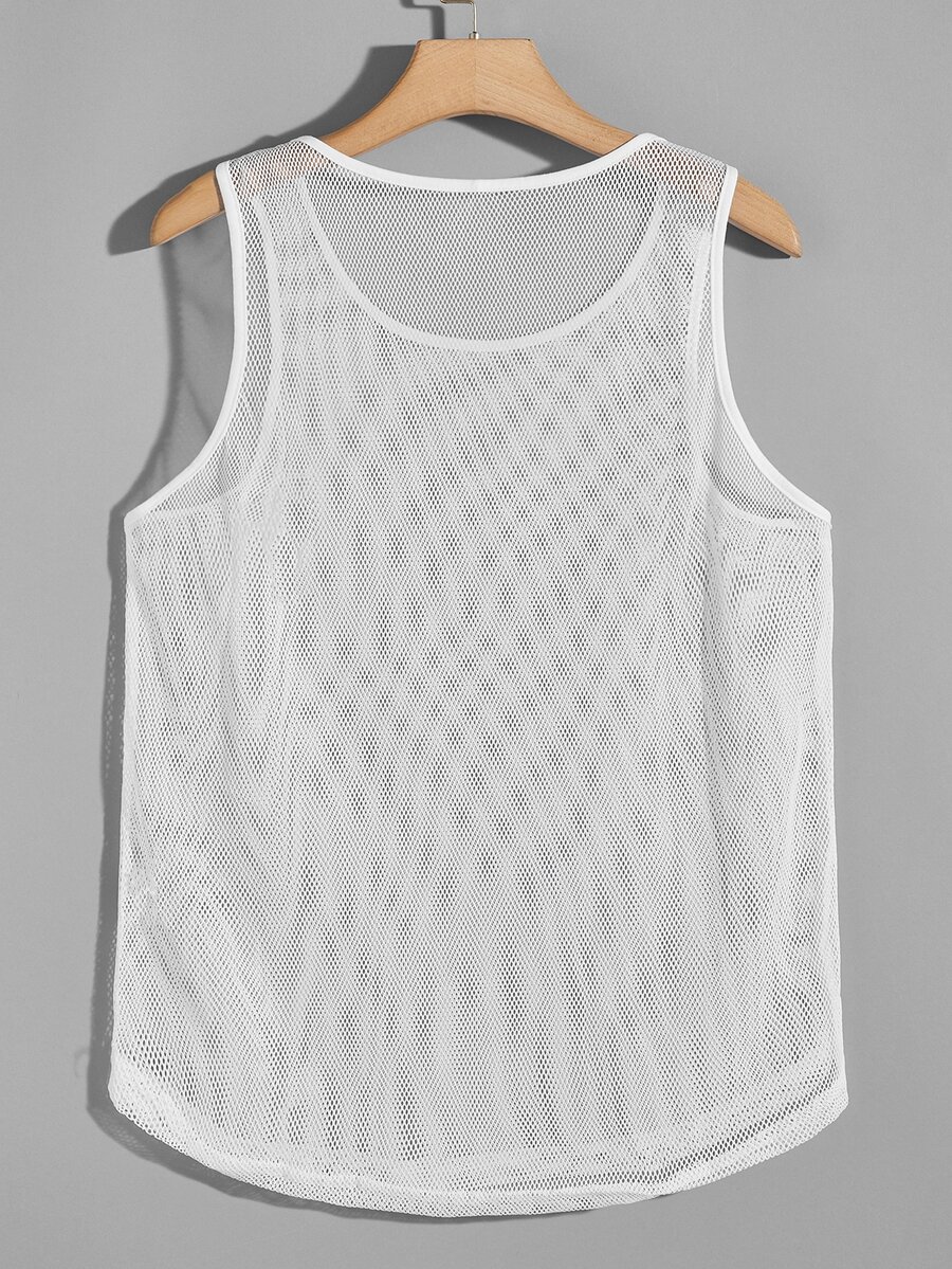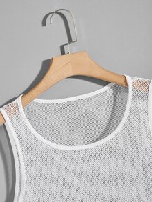 Men Binding Detail Fishnet Mesh Tank Top