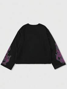 Street Life Men Black Oversized Long T-Shirt With Eye Cross Flame & Round Rhinestone Pattern, Streetwear For Casual Daily Wear, Fall