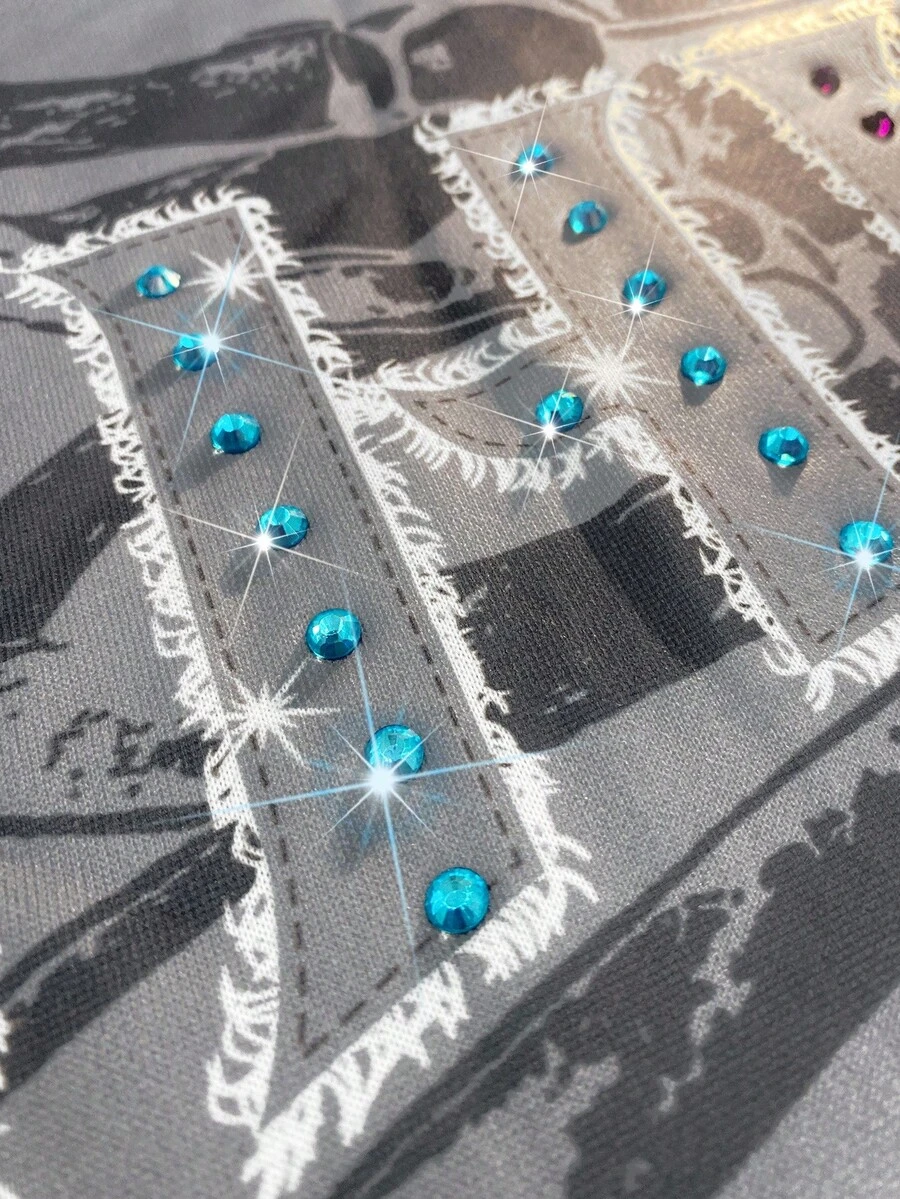 Goth Men Bone Pattern Rhinestone Decor Round Neck Long Sleeve T-Shirt, Fall