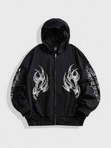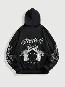 Street Life Men Casual Contrast Color Print Hoodie Sweatshirt, Fall