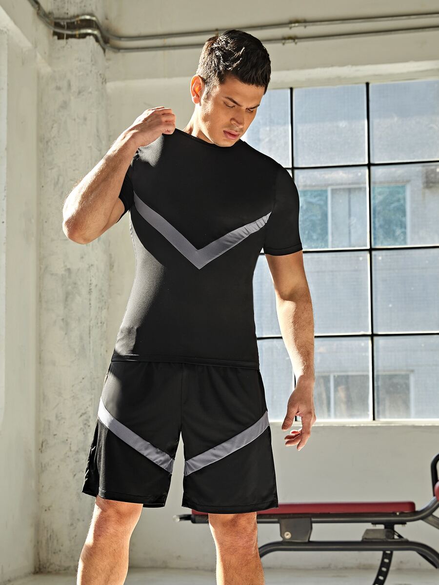 Men Chevron Pattern Super Elastic Sports Set