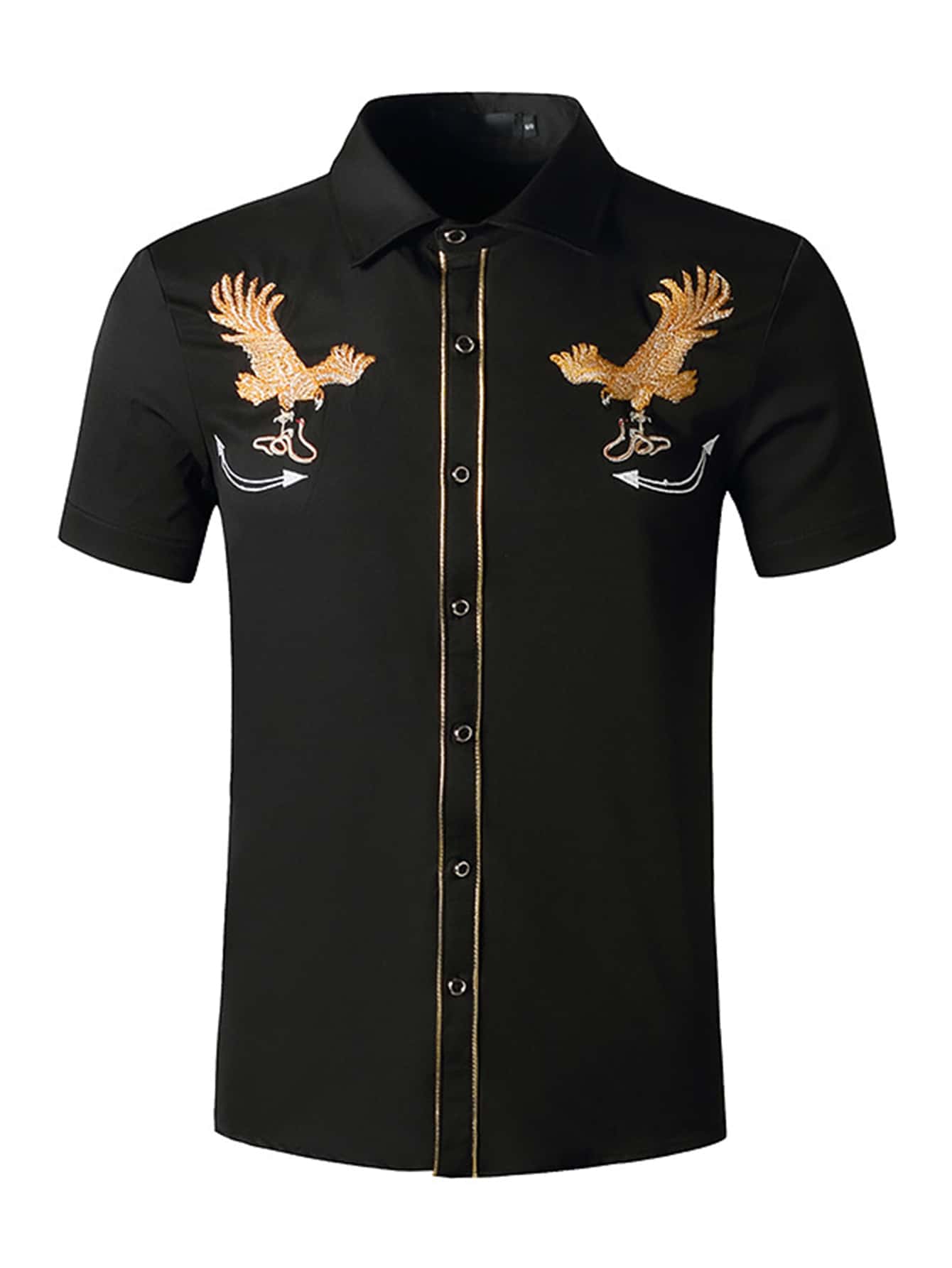 Men Eagle Embroidery Button Up Shirt