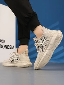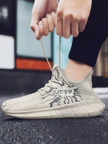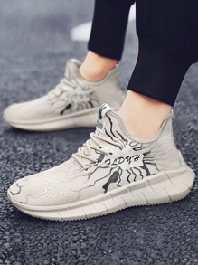 Men Lace Up Decor Graphic Sneakers
