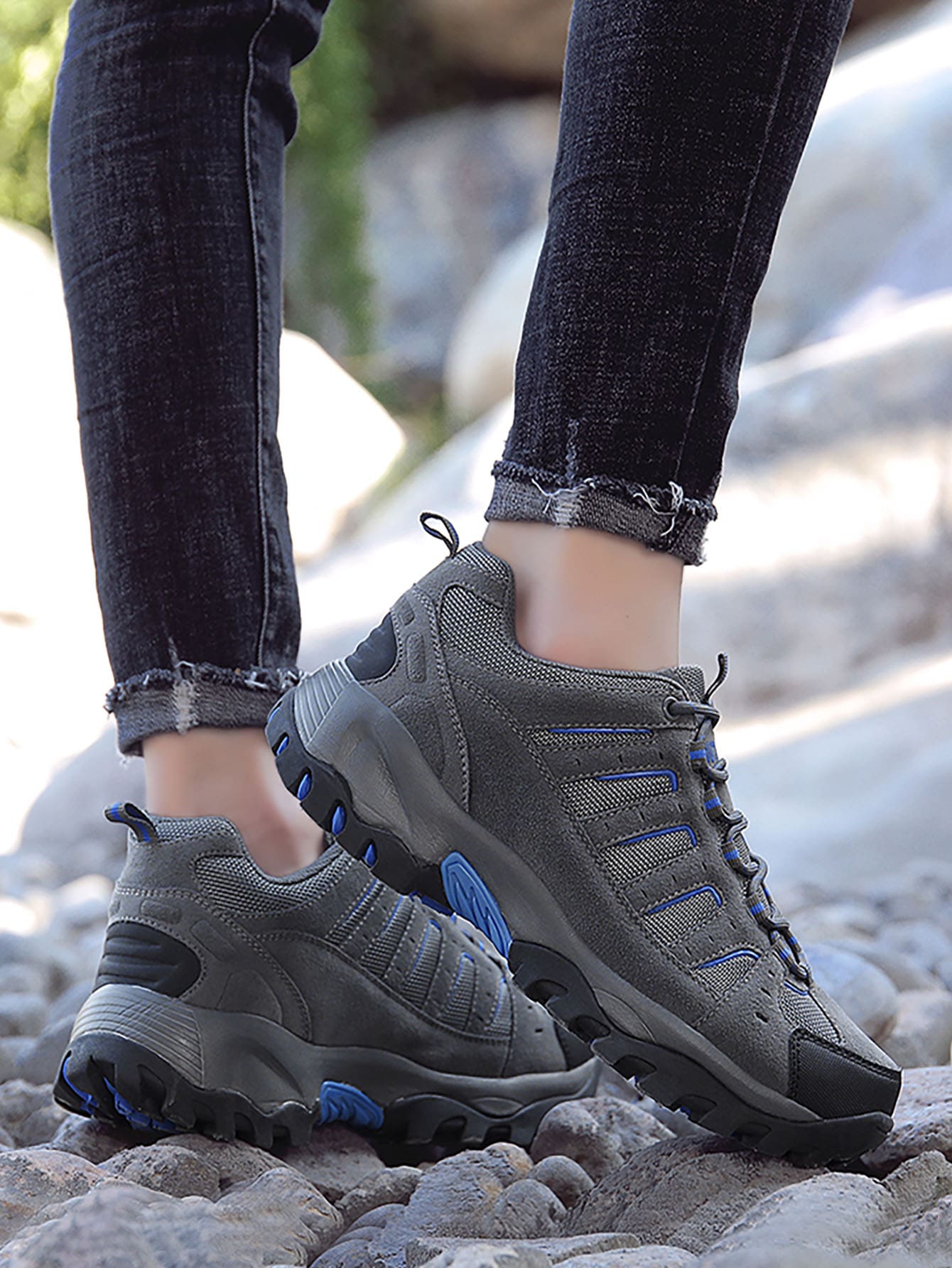 Men Lace-up Front Mesh Panel Hiking Shoes