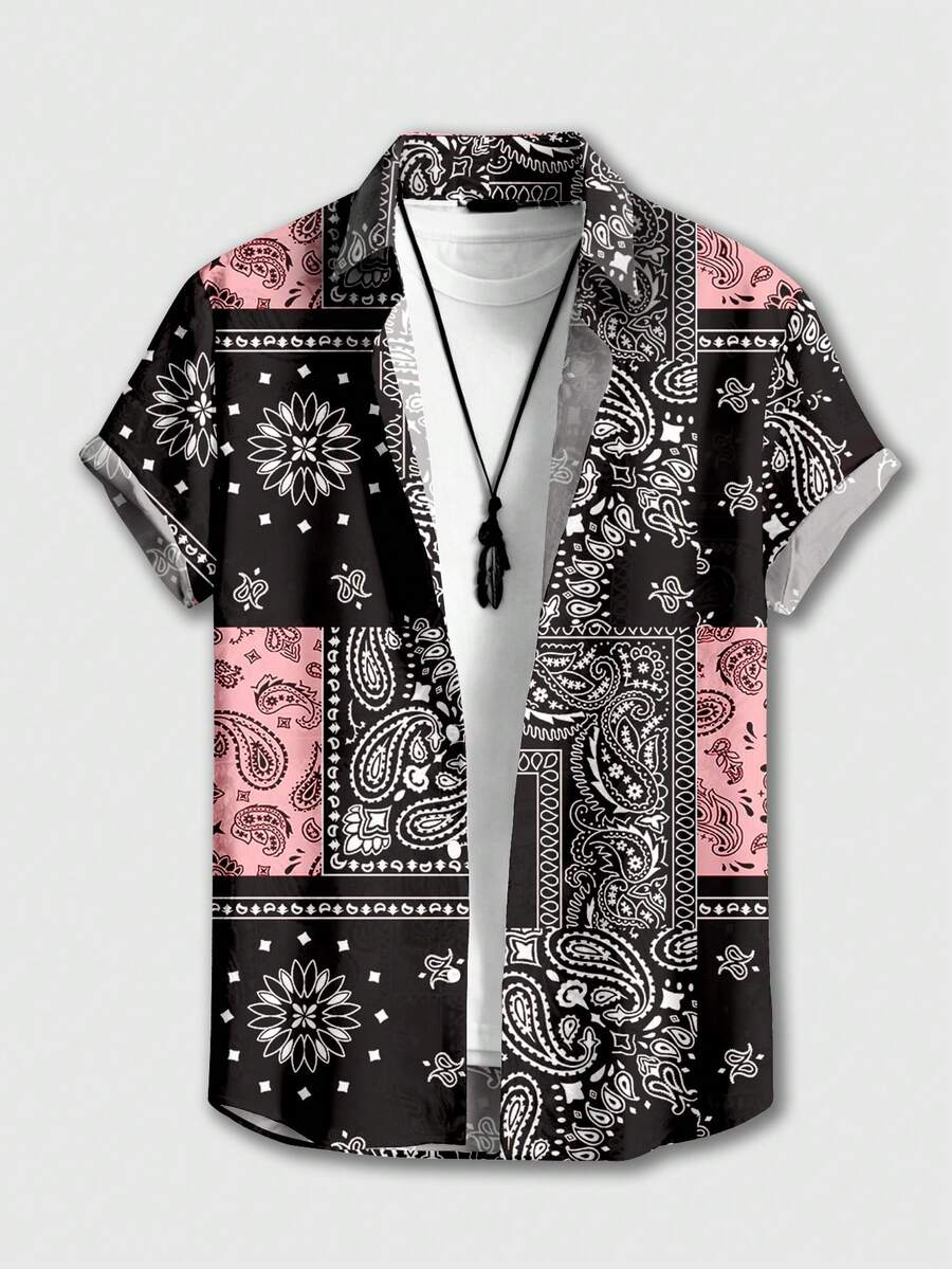 Men Paisley Print Short Sleeve Shirt For Summer Vacation