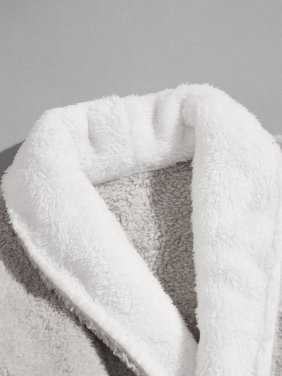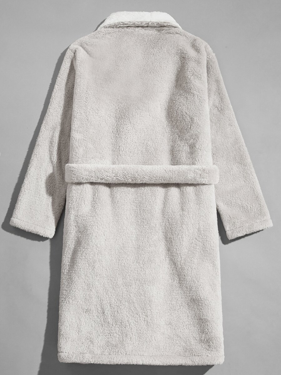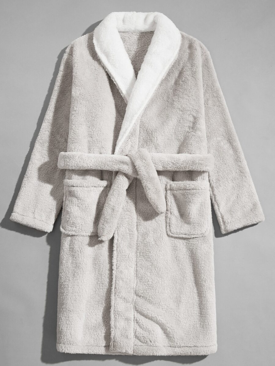 Men Pocket Front Belted Flannel Bathrobe