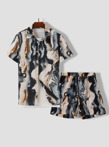 Men Random Print Shirt With Shorts