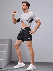 Men Reflective Letter Graphic Drawstring Sports Shorts