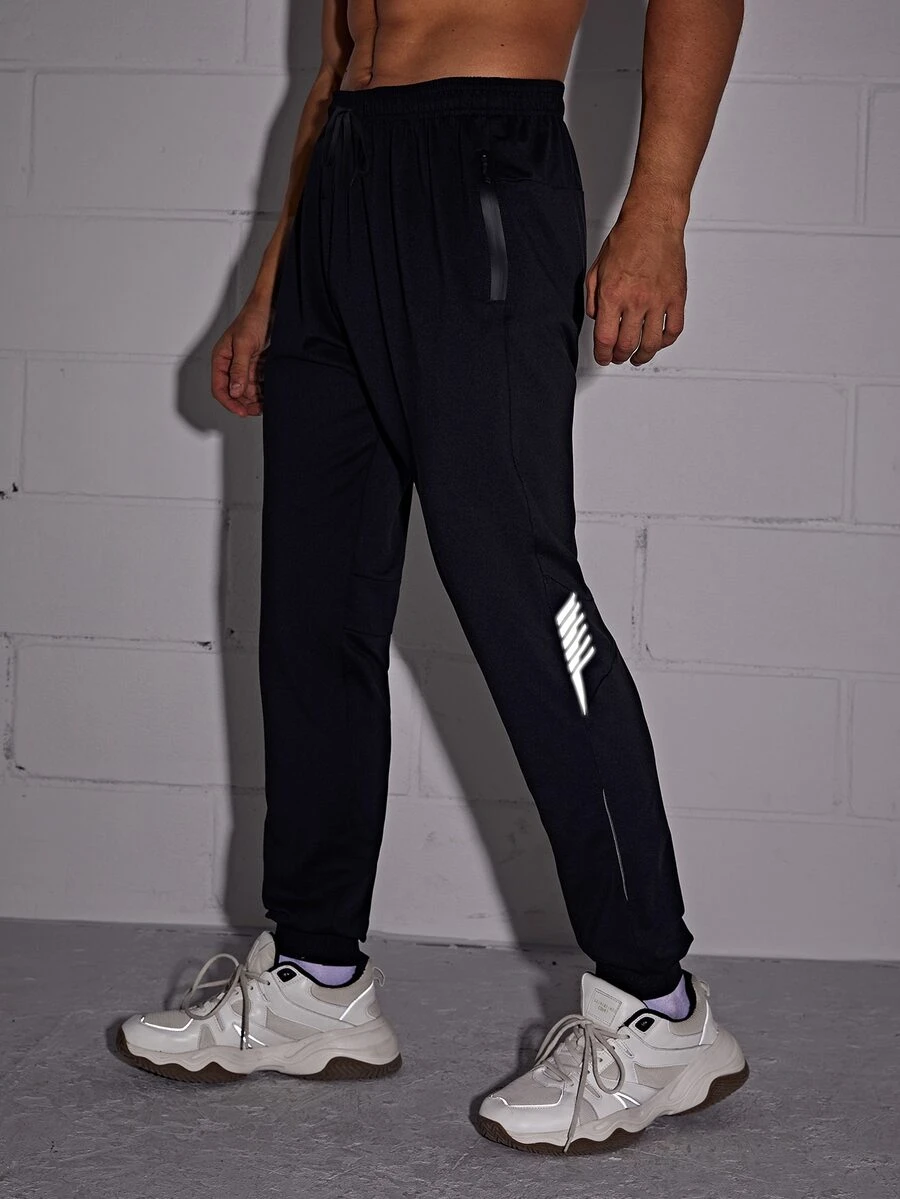Men Reflective Panel Drawstring Sport Pants