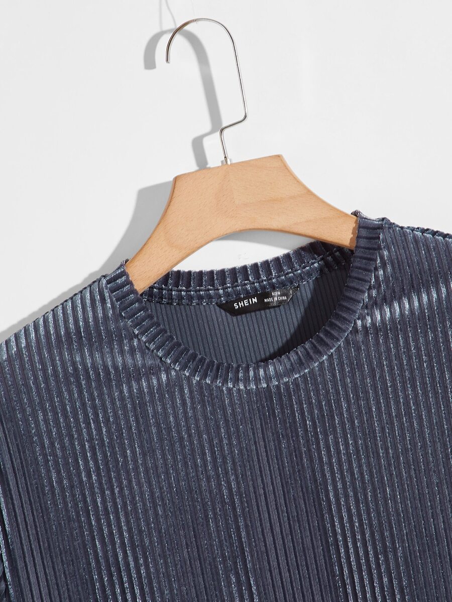 Men Rib-knit Velvet Tee