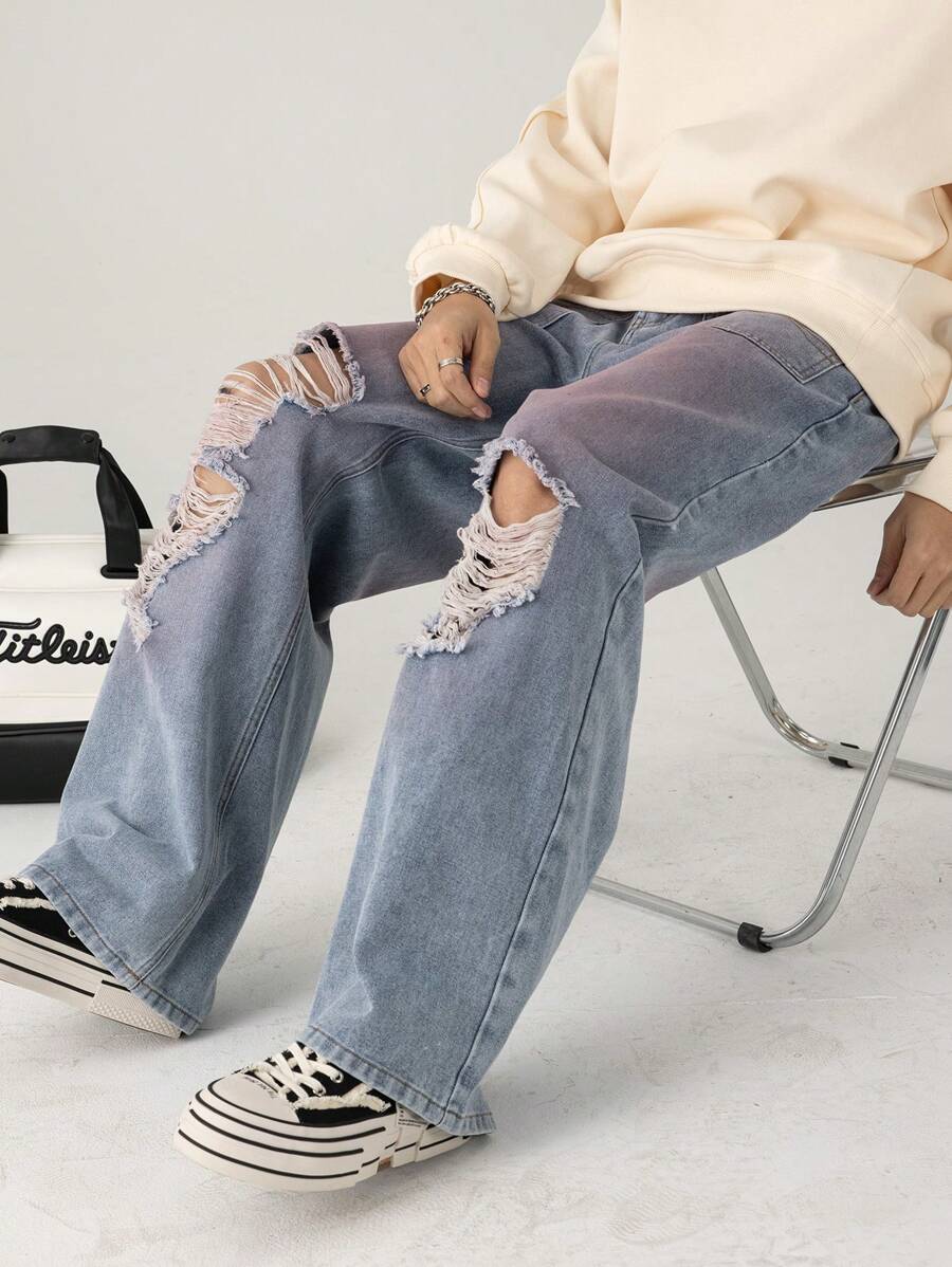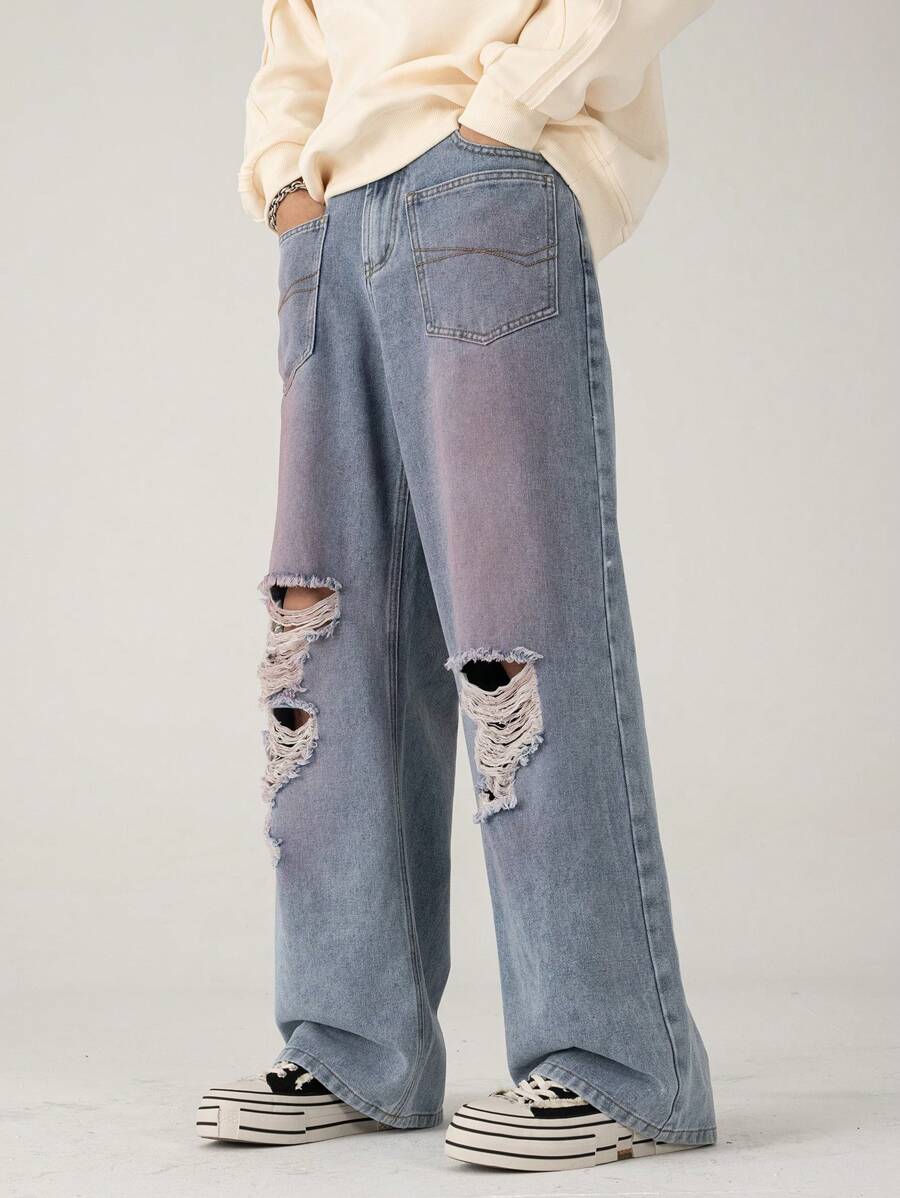 Street Life Men'S Pink Washed Ripped Jeans, Casual Wear For Spring And Summer