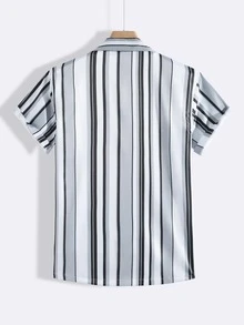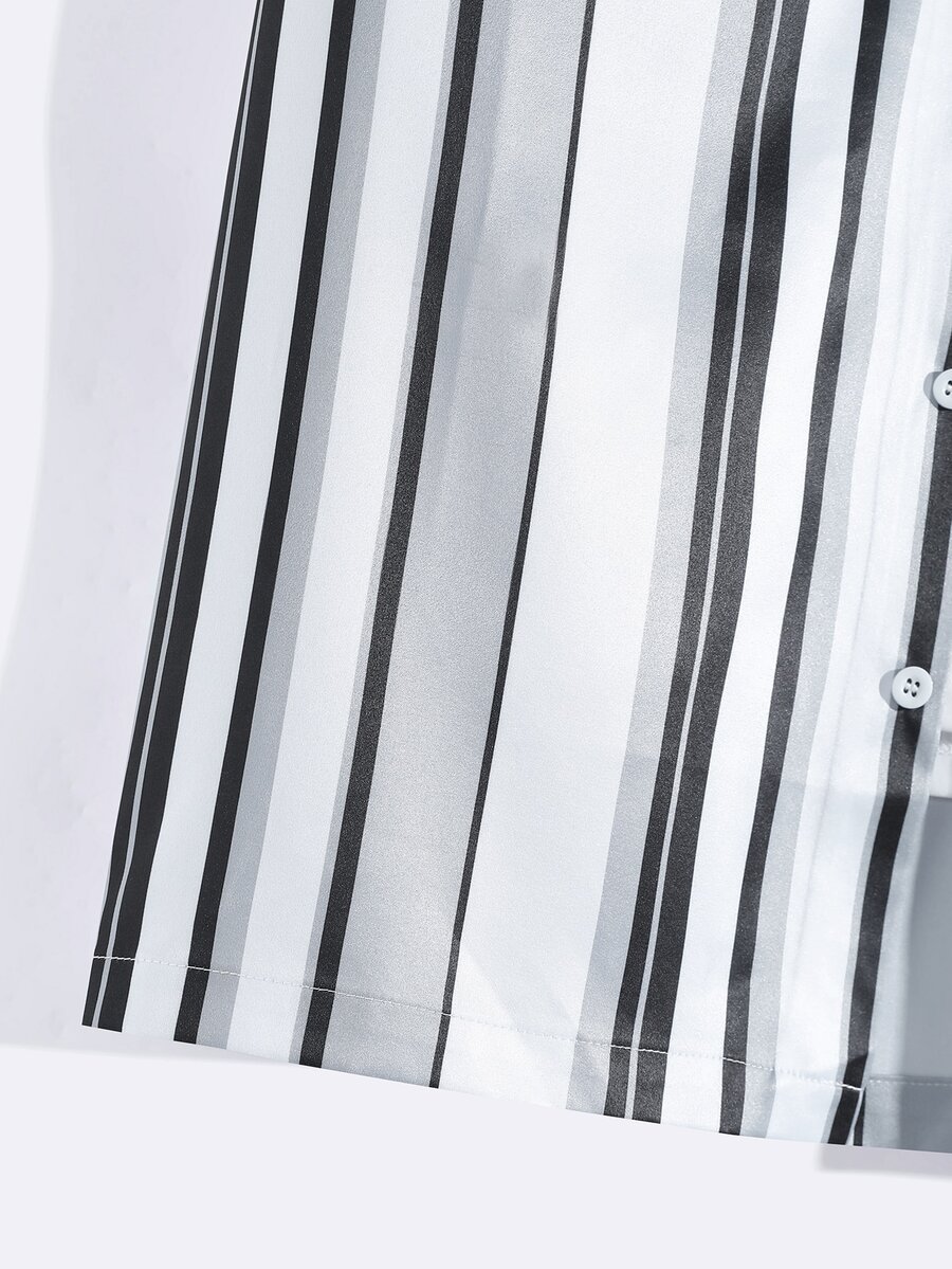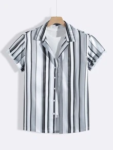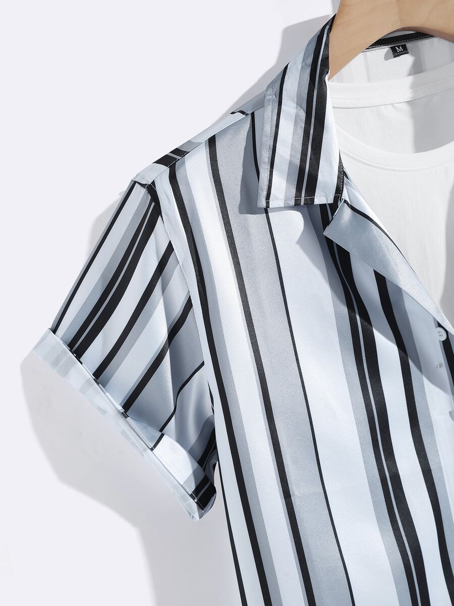 Men Striped Print Button Front Shirt Without Tee