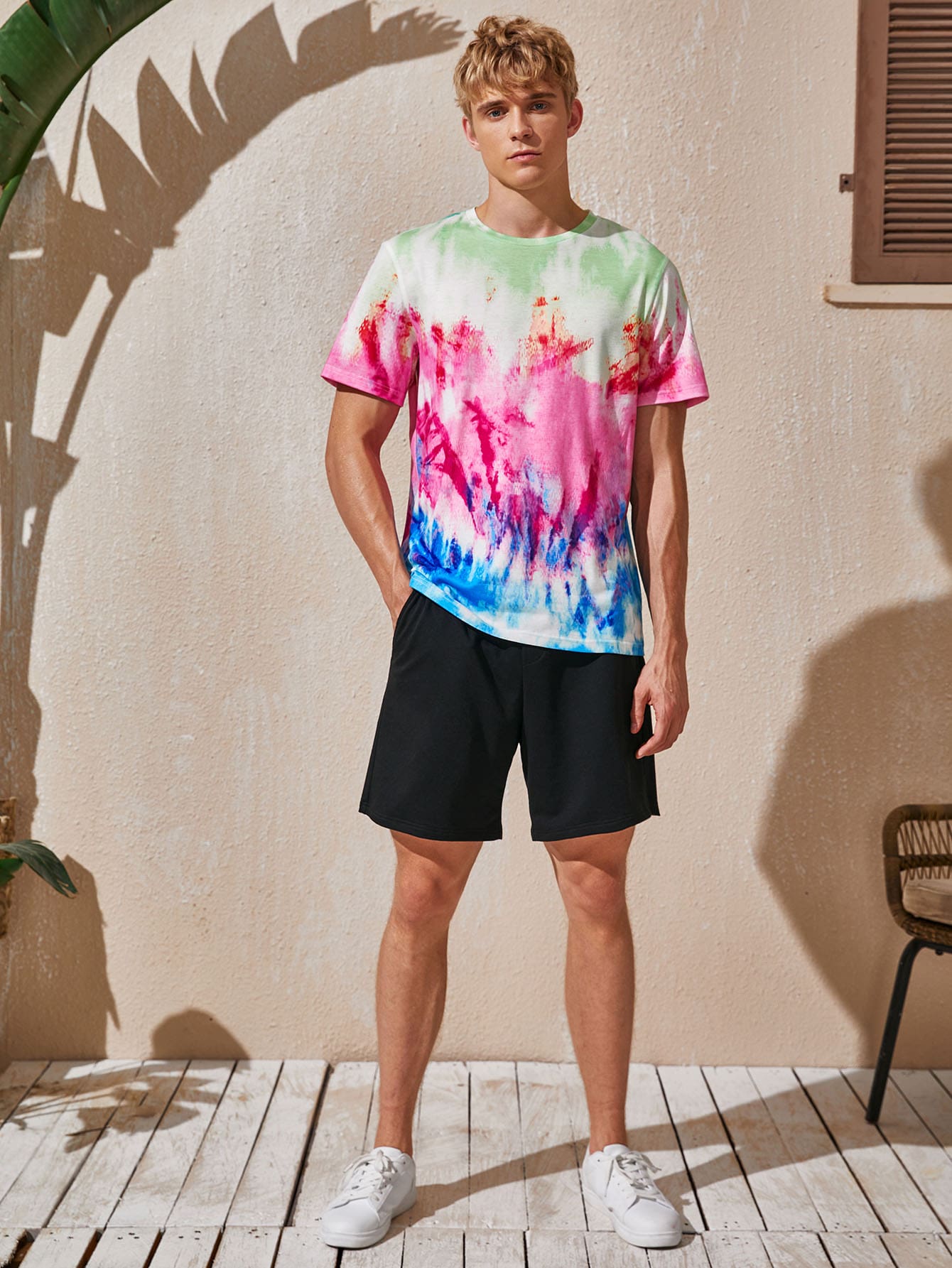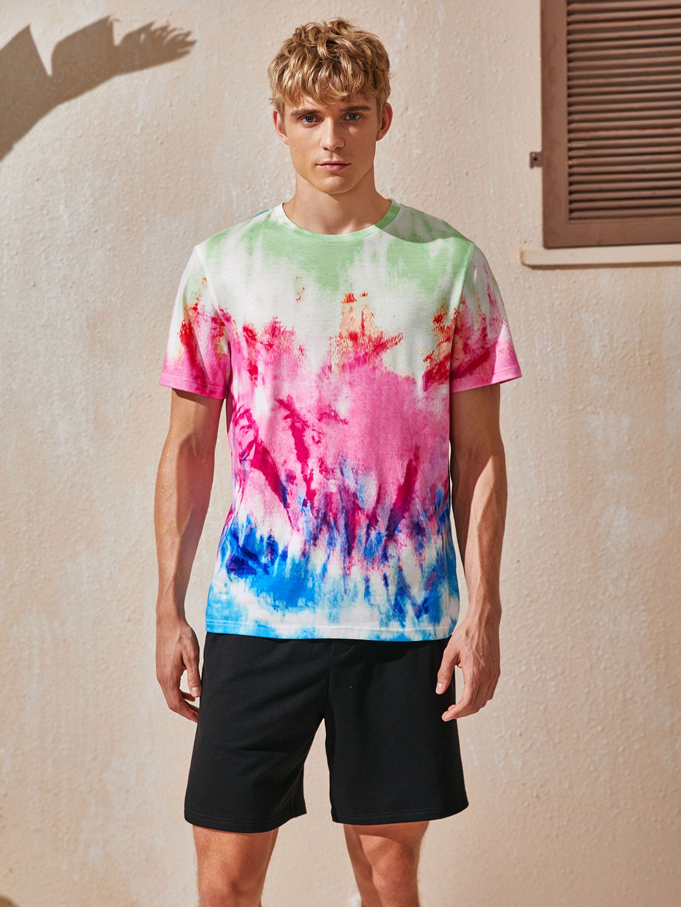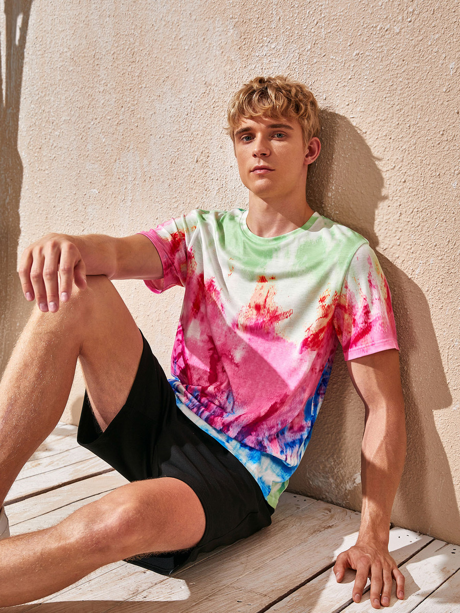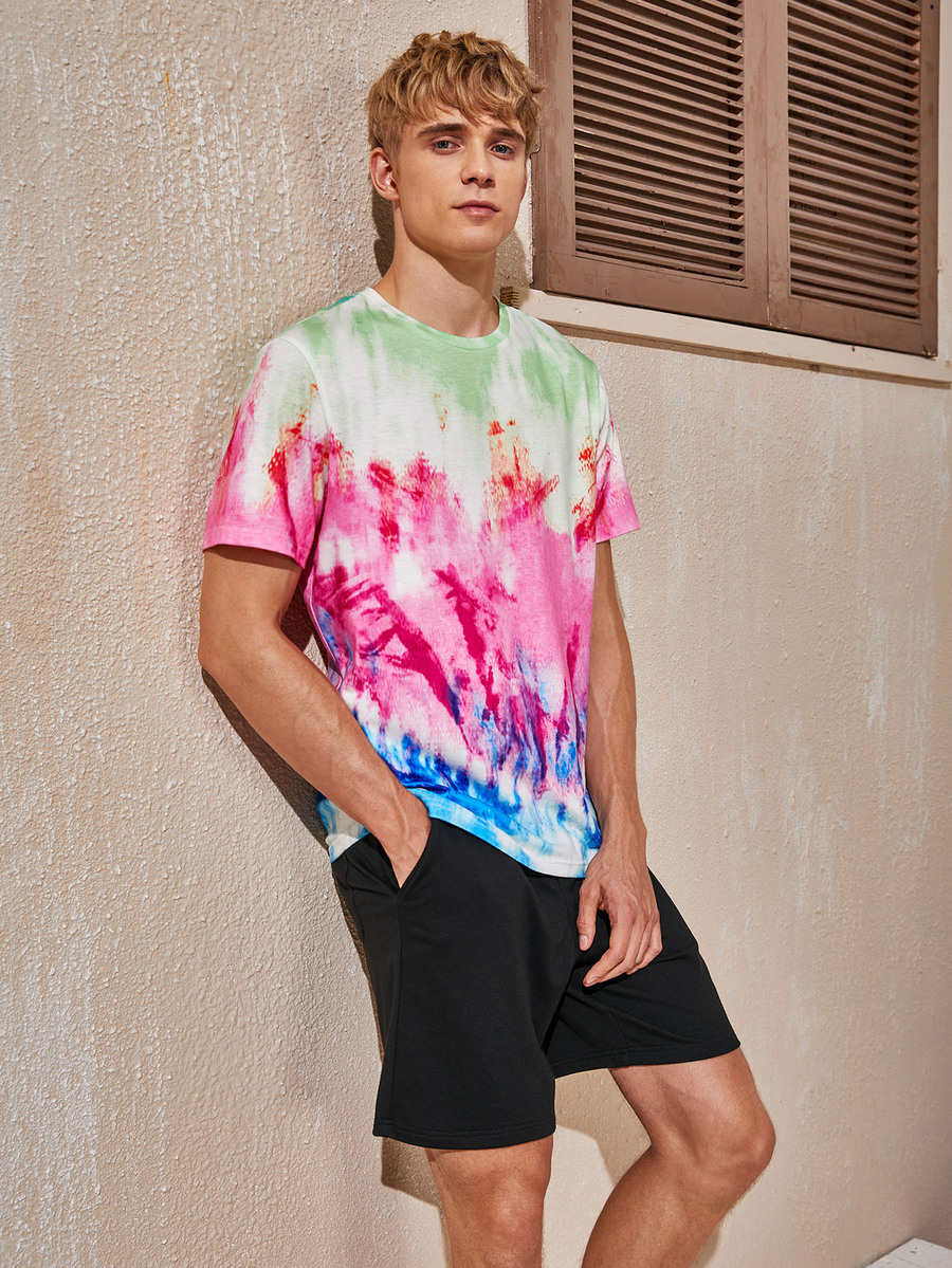 Men Tie Dye Tee & Track Shorts Set