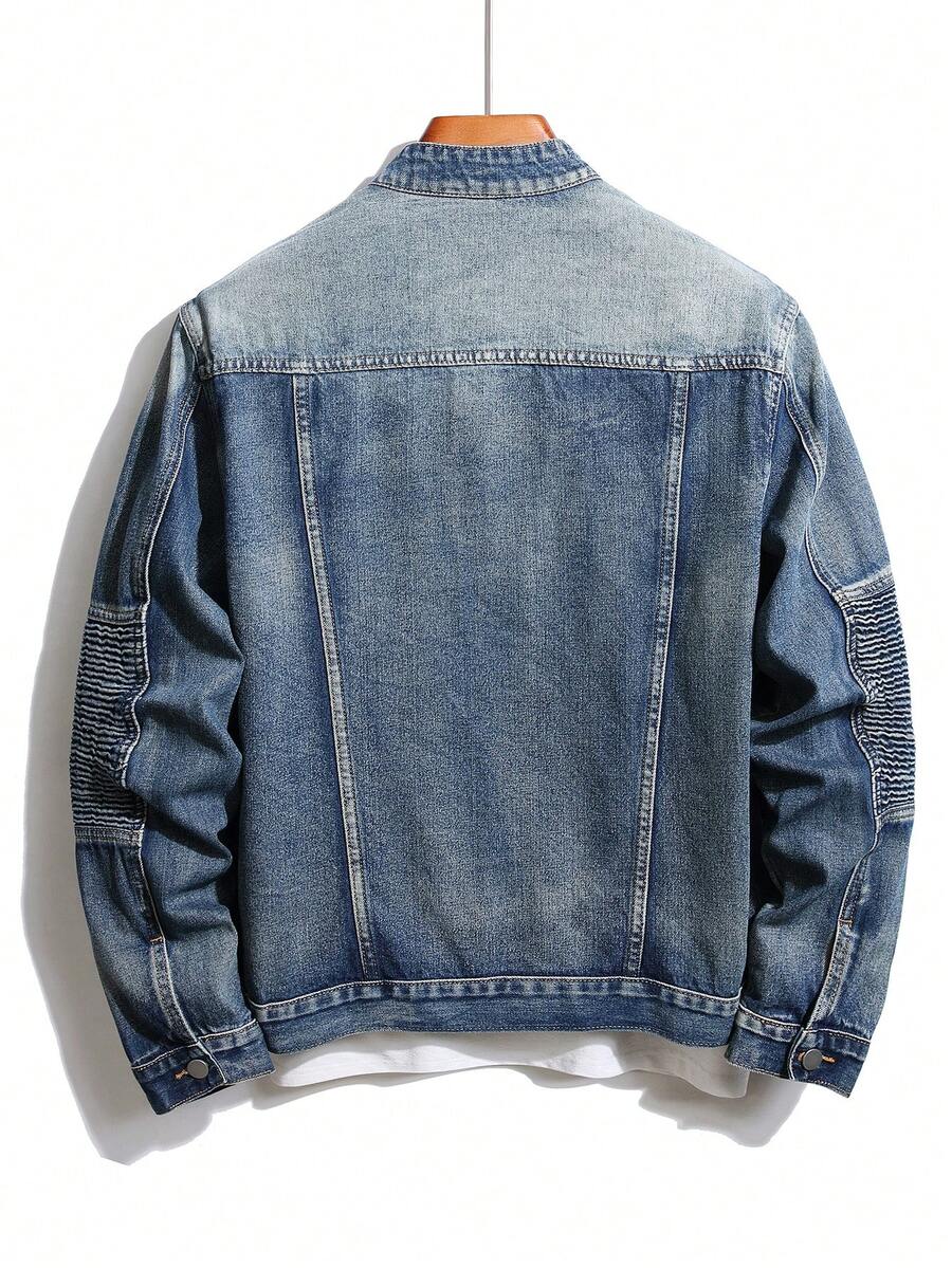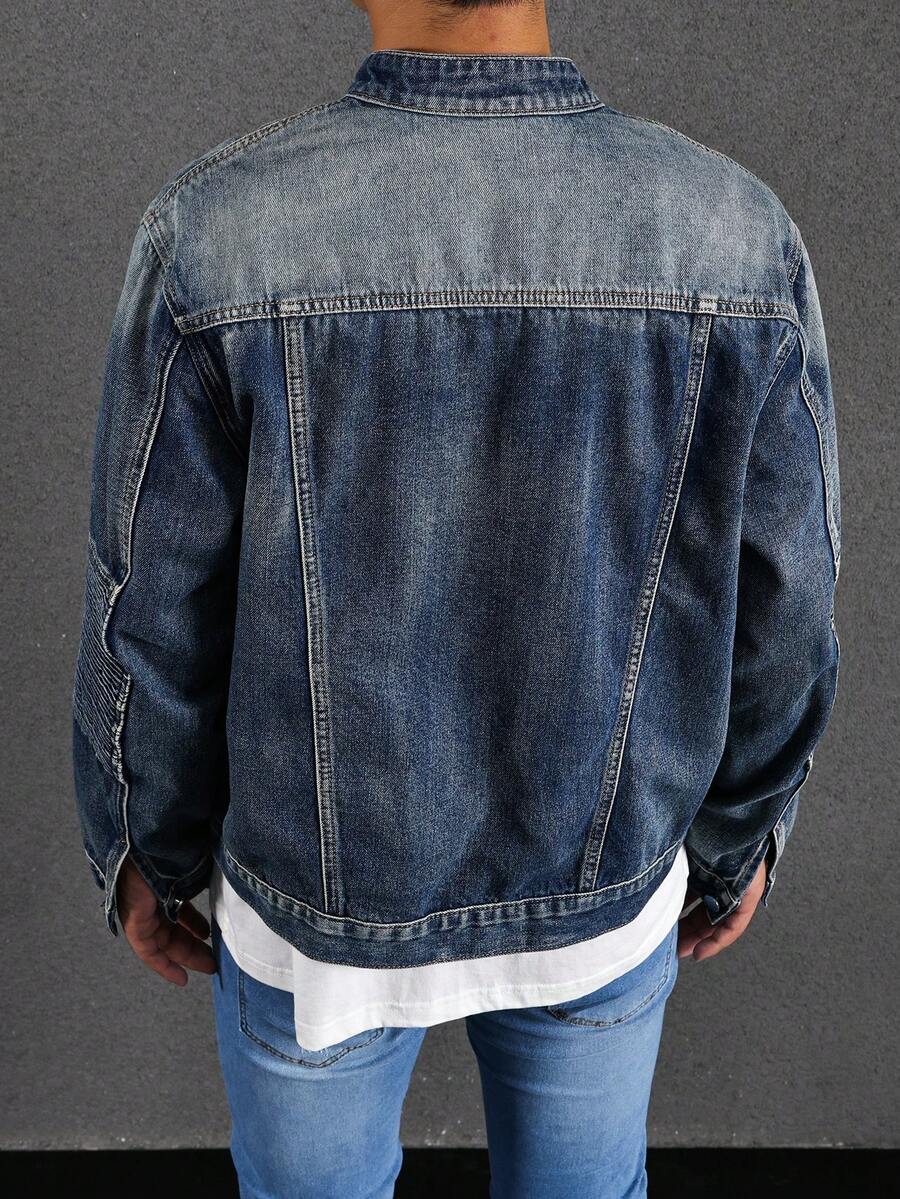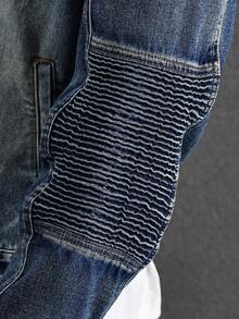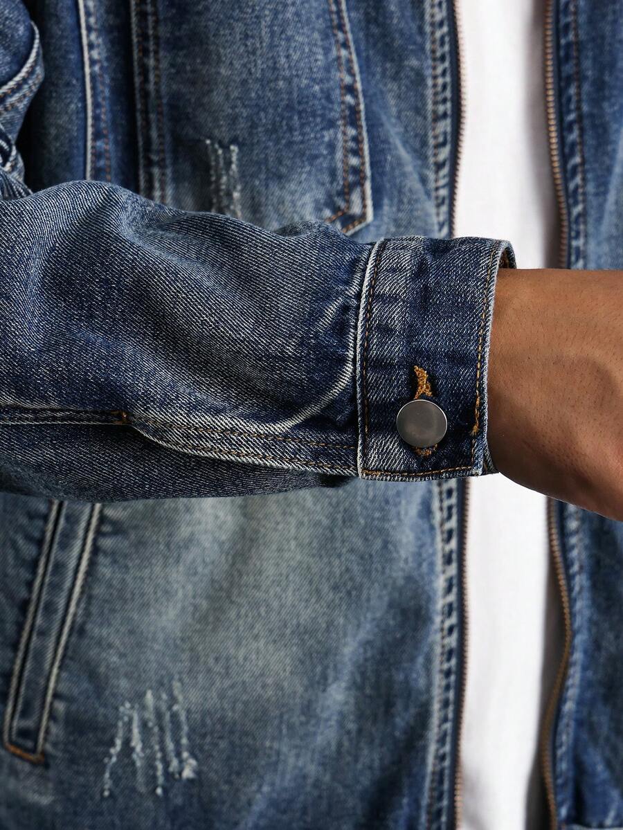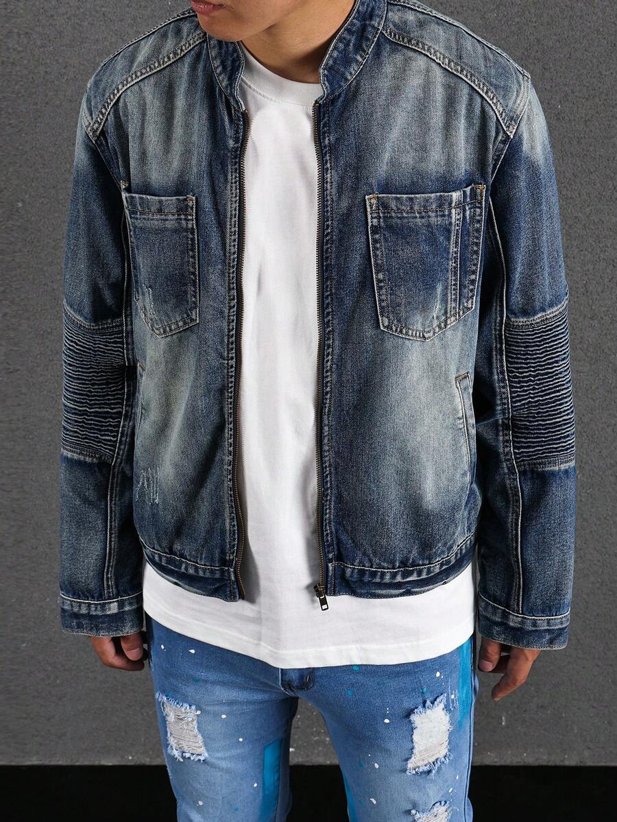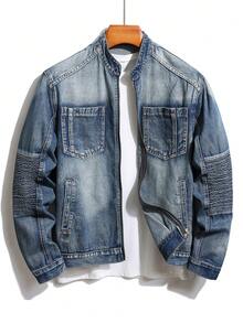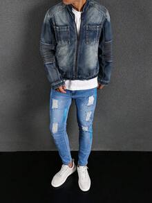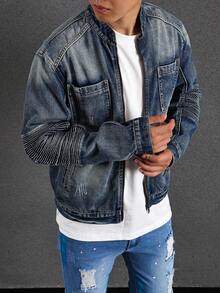 Guys Zip Up Pocket Patched Denim Jacket