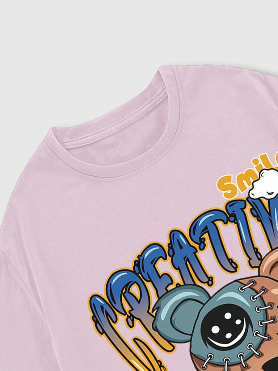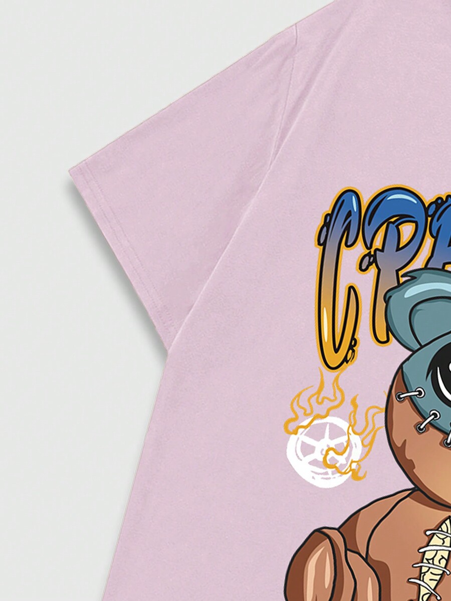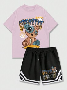 Street Life Men's Cartoon Bear & Letter Print T-Shirt And Shorts Set