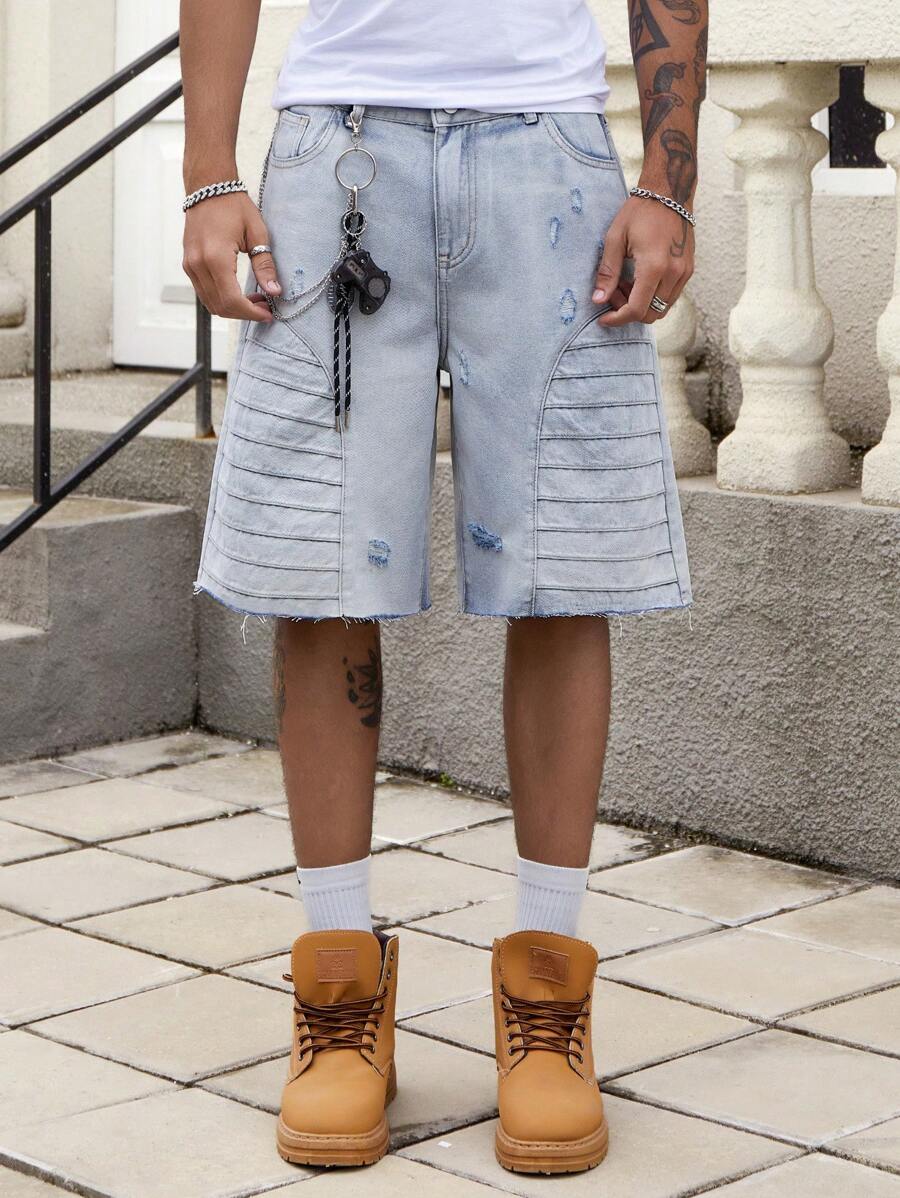 Street Life Men's Casual Washed Distressed Wide-Leg Denim Shorts