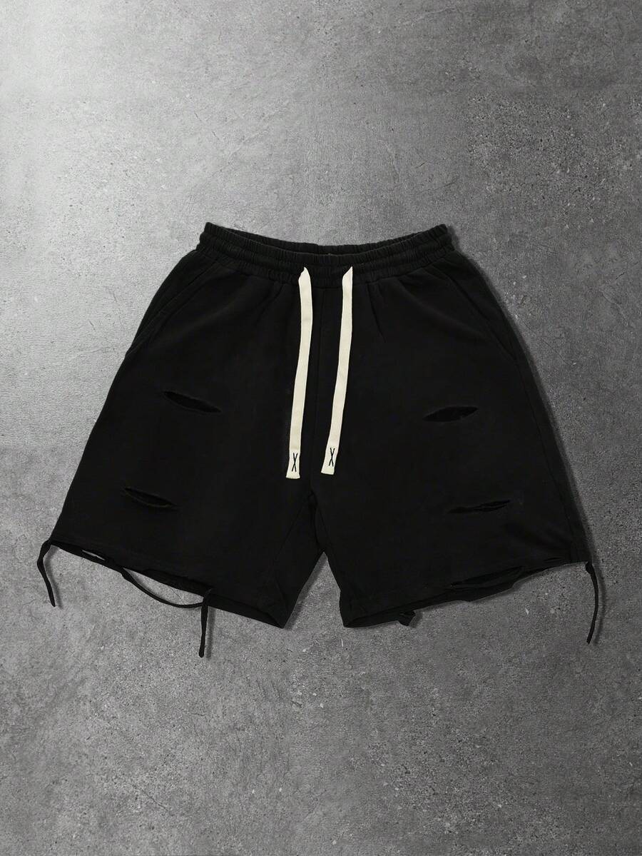 Men's Drawstring Waist Pocket Distressed Loose Casual Shorts