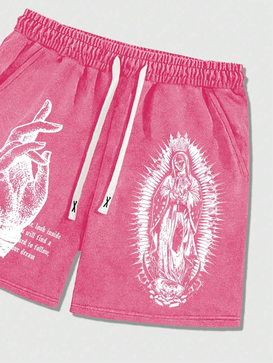 Men's Drawstring Waist Vintage Washed Slogan & Gesture Print Shorts