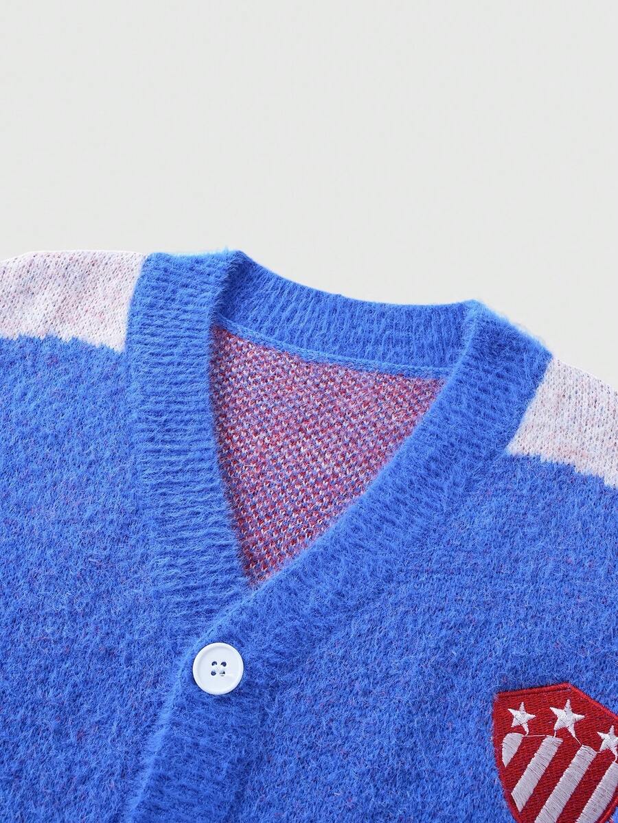 Men's Embroidered Letter Jacquard Long Sleeve Single-Breasted Knit Cardigan